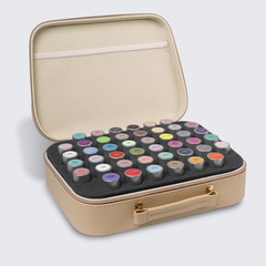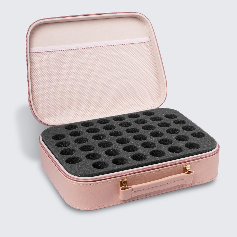 The gelmoment storage case is a sturdy organizer bag with a waterproof PU leather exterior. It comes with a thick foam insert that holds polish bottles securely in an upright position. This insert is also removable, making the bag a multipurpose storage case that comes in handy both at home and on the go.